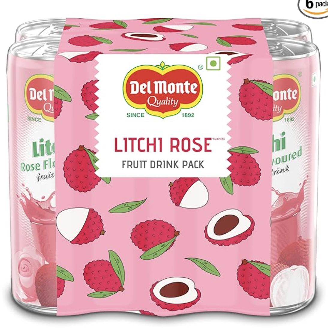 Del Monte Litchi Rose Fruit Drink (Pack of 6) - Juices Litchis, Subtle Rose